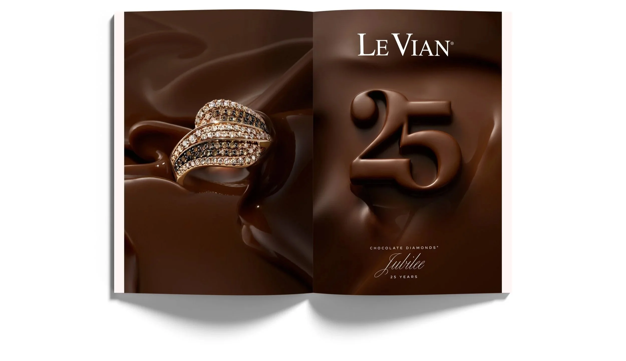 Twenty-five years of Chocolate Diamonds is a milestone worth celebrating. To mark the occasion, we developed a new still and video campaign using real melted chocolate to erupt and cascade around the product, capturing Le Vian’s signature richness in a bold, celebratory moment. Click the video below to watch a behind-the-scenes look at how it was created.