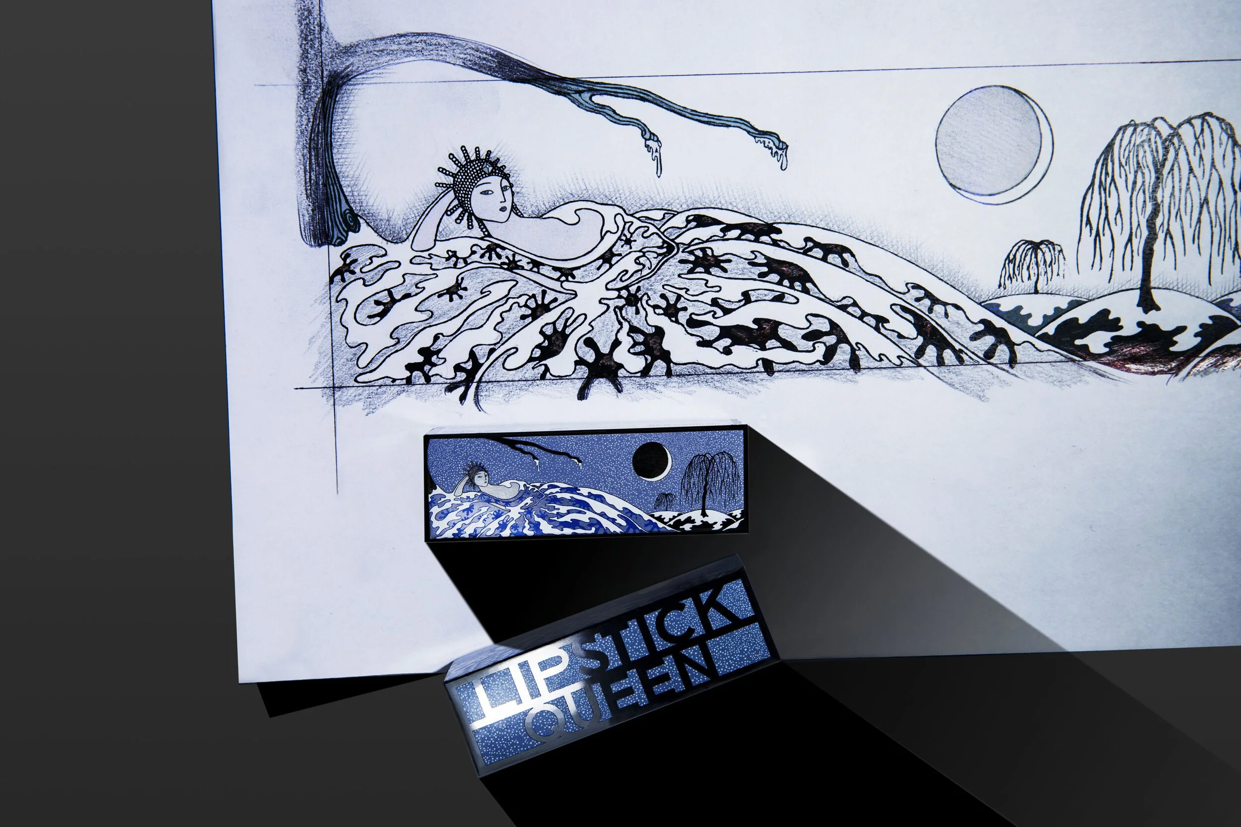 Conceived by beauty entrepreneur Poppy King and creative director James Benard in 2006, LQ carved out a unique space in the beauty industry with blockbuster products conceived by Poppy King, with unconventional branding and packaging from Benard Creative. Spending no money on promotion or advertising: the only way that people learn about Lipstick Queen products is by discovering the packaging at retail, social media or by word of mouth from brand loyalists. While every other brand on the cosmetics floor sells the beauty of the world’s leading models and actors, we chose a more imaginative approach: hand-drawn illustrations by James Benard. An arthouse brand at heart, we’ve never shown a face in any of our packaging or point of sale materials. This brand is a celebration of inclusivity, focusing on who people are, not what they are supposed to look like. LQ’s “Frog Prince” lipstick shade, which transforms from green to pink upon application, was hailed by Elle Magazine as one of the 10 most iconic lipstick shades of all time. This brand makes a habit of constant reinvention, surprising customers. The only consistent aspect about the messaging and artwork is that it’s inventive, rebellious and unpredictable. Over the years the carton visuals have become the main vehicle by which the brand speaks with consumers. Each hand-illustrated piece of art asks questions rather than offering answers. Myriad interpretations of what the packaging visuals mean have blossomed into lively online discussions, bringing new brand aficionados and long-term customers.